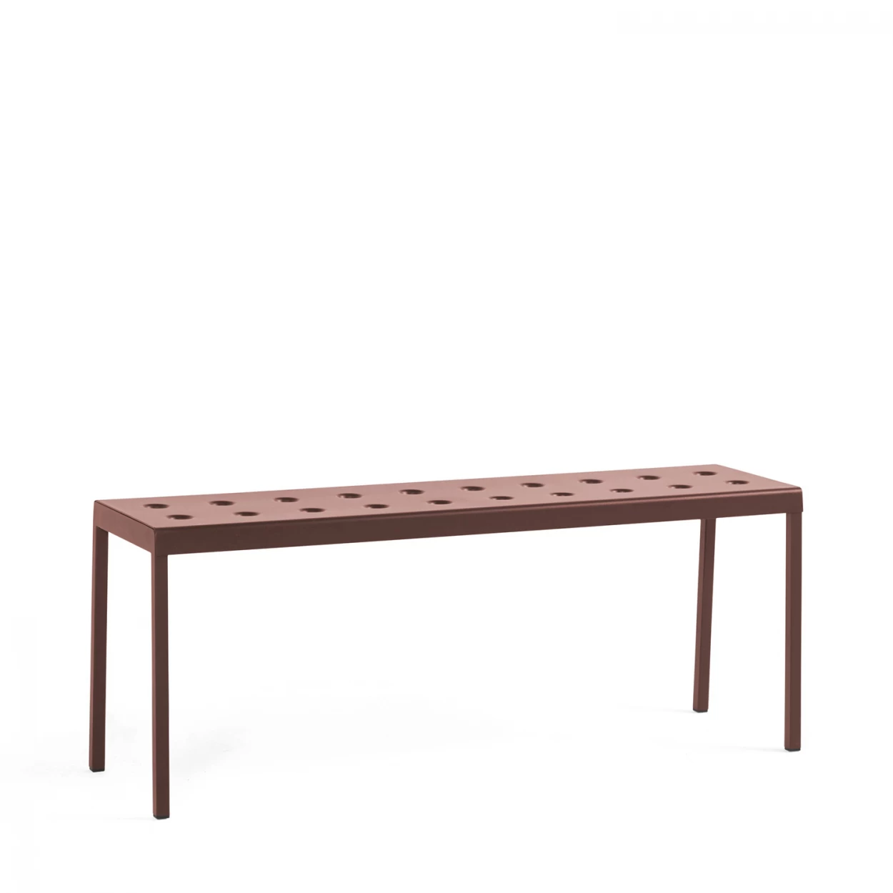 Die Balcony Gartenbank ist eine elegante Sitz- und Ablagelösung für den Außenbereich. Ronan und Erwan Bouroullec haben sie für HAY in einem schlichten, rechteckigen Design entworfen, das durch die schlanken Beine aufgelockert wird. Die Löcher in der Sitzfläche verstärken die Konstruktion, lassen Regenwasser leichter ablaufen und verleihen der Bank einen besonderen, freundlichen Ausdruck. Die Balcony Bench besteht aus pulverbeschichtetem Stahl mit einer Grundierung für den Außenbereich, was ihr eine optimale Widerstandsfähigkeit und Haltbarkeit schenkt. Sie ist in verschiedenen stilvollen Farb- und Größenvarianten erhältlich, wodurch sie in allen Bereichen einsetzbar ist – von kleinen Balkonen und Terrassen bis zu Gärten und größeren Außenbereichen. Ein robuster Hingucker für Deinen gemütlichen Outdoor-Bereich.