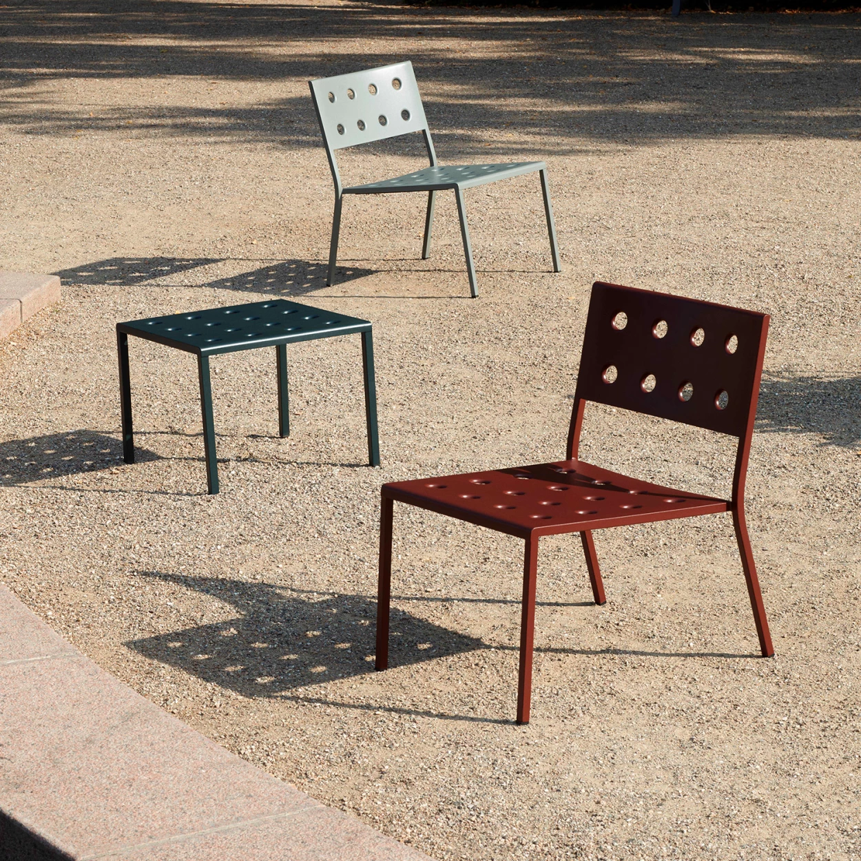 Der Balcony Low Table ist ein stilvoller Beistelltisch für den Außenbereich. Er wurde von Ronan und Erwan Bouroullec für HAY in einem schlichten quadratischen Design entworfen, das durch schlanke Beine aufgelockert wird. Die Löcher in der Tischoberfläche verstärken die Konstruktion, lassen Regenwasser leichter ablaufen und verleihen dem Tisch einen freundlichen, besonderen Ausdruck. Balcony ist aus pulverbeschichtetem Stahl mit einer Grundierung für den Außenbereich hergestellt, was ihm eine optimale Widerstandsfähigkeit und Langlebigkeit schenkt. Der vielseitige Beistelltisch ist in verschiedenen Farb- und Größenoptionen erhältlich. Ein praktischer Hingucker für Deinen gemütlichen Außenbereich.