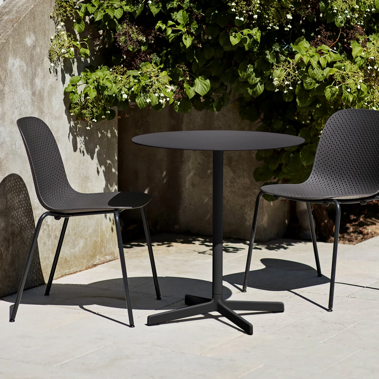 Nimmt kaum Platz weg, bietet aber genügend davon für ein ausgiebiges Terrassenfrühstück zu Zweit: Der Neu Table von HAY ist von solch widerstandsfähiger Qualität, dass er für Deinen Balkon und Garten genauso geeignet ist wie für öffentliche Outdoorbereiche, wie Bistros, Cafés und Büros.