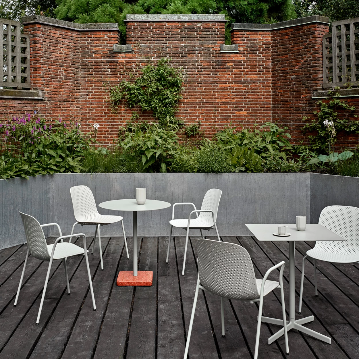 Nimmt kaum Platz weg, bietet aber genügend davon für ein ausgiebiges Terrassenfrühstück zu Zweit: Der Neu Table von HAY ist von solch widerstandsfähiger Qualität, dass er für Deinen Balkon und Garten genauso geeignet ist wie für öffentliche Outdoorbereiche, wie Bistros, Cafés und Büros.
