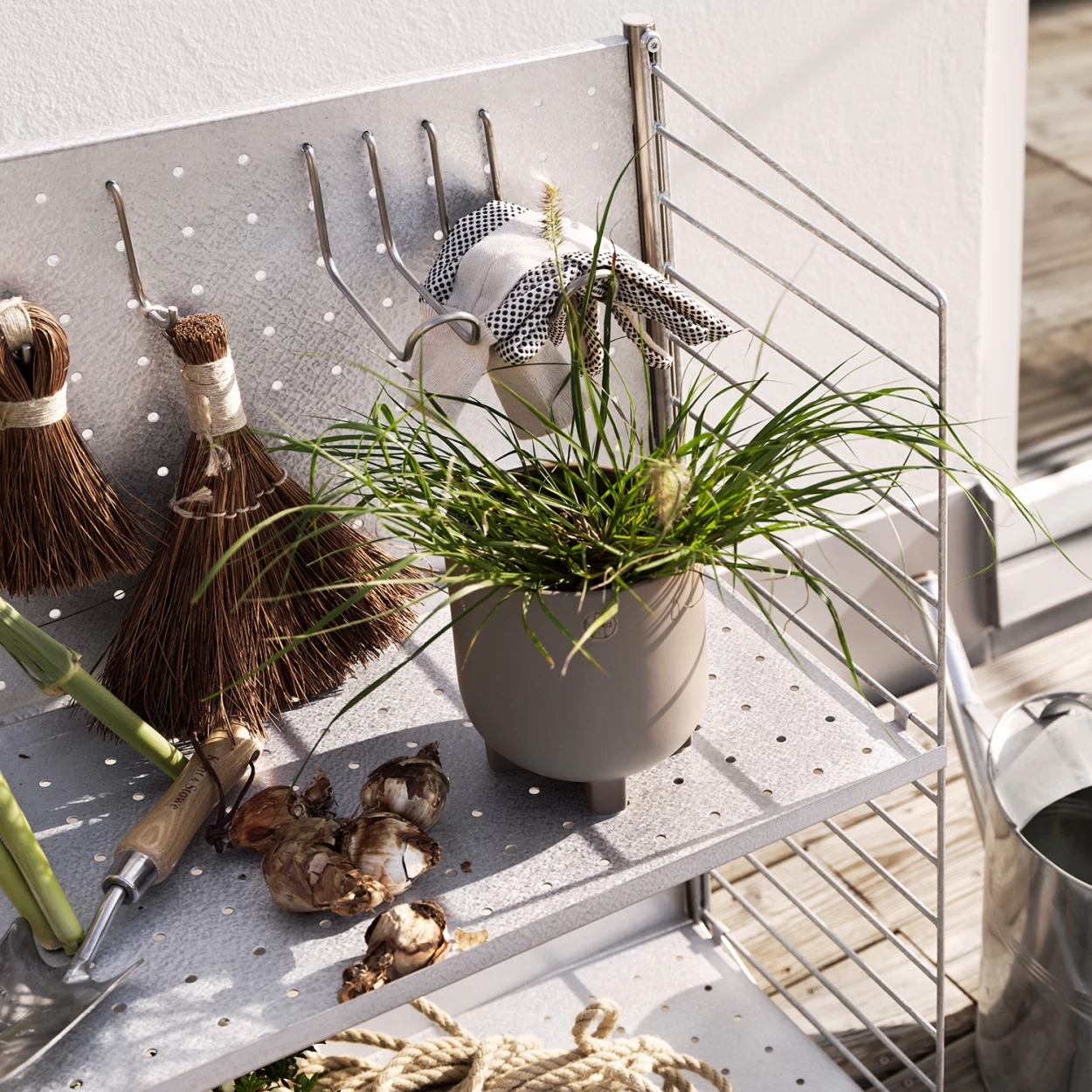 Die vertikalen Haken sind so konzipiert, dass sie in die Rückwand des freistehenden Outdoor Regals von String Furniture passen. So kannst Du dieses optimal nutzen und bringst Ordnung in Deine Gartengeräte, Grillutensilien und andere Gegenstände für draußen. Die Haken sind aus Edelstahl gefertigt und halten jedem Wetter stand.