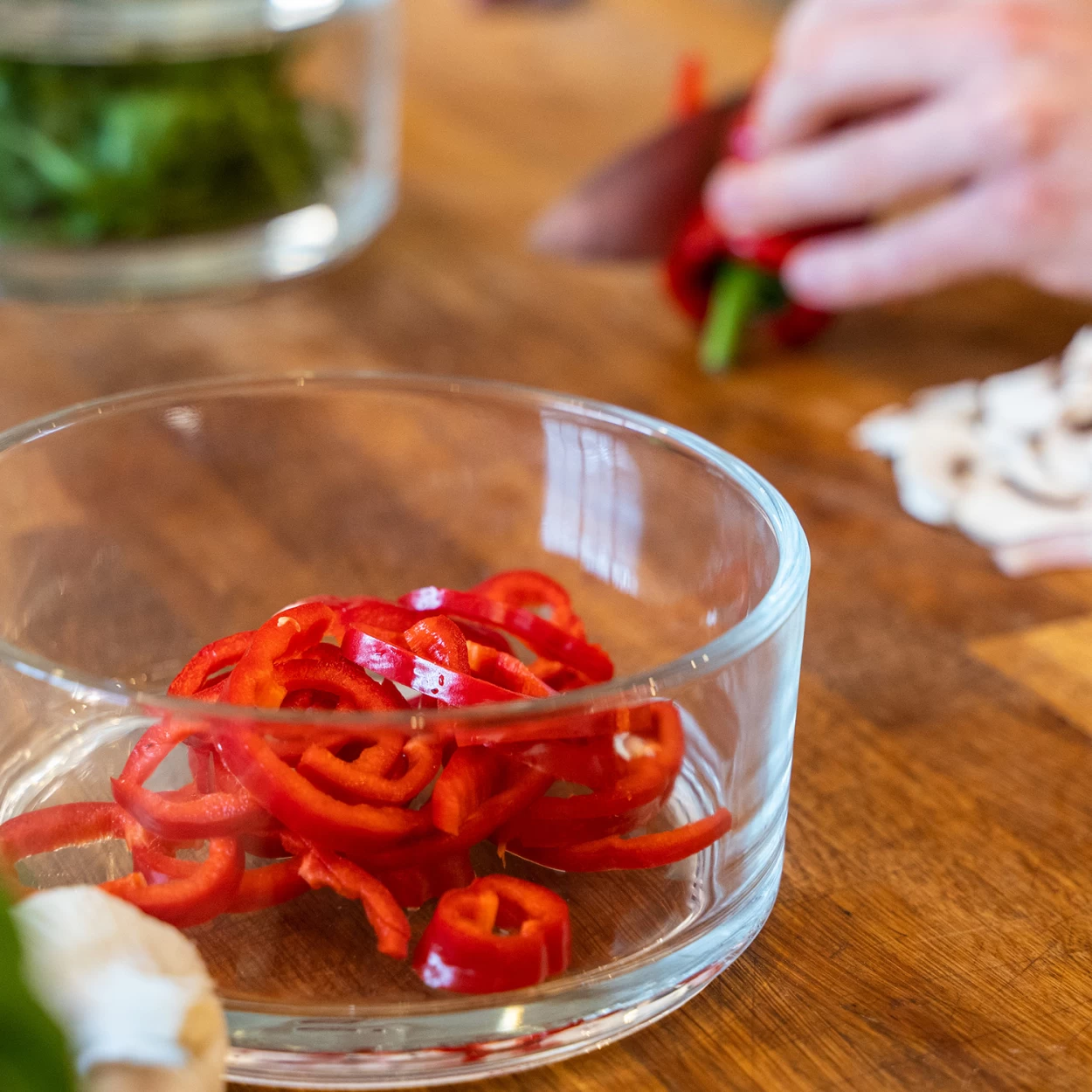 Jetzt ist es an der Zeit, eure Pizzakunst mit unserer platzsparenden Aufbewahrungslösung auf das nächste Level zu heben. Zusammengeklebte Teigbällchen gehören der Vergangenheit an, wenn du sie einzeln in jeder der drei haltbaren Schüsseln aus Borosilikatglas des Sets aufgehen lässt.