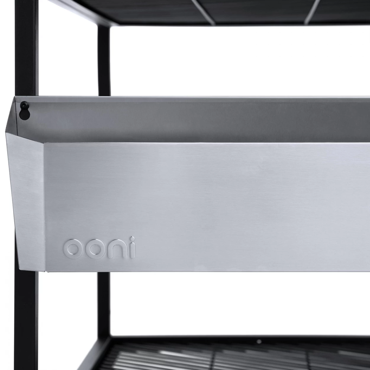 Mit dem Ooni Utensilienfach hast du kühles Bier, Handschuhe und Sauce jederzeit griffbereit. Das Utensilienfach aus Edelstahl wurde passend zum Ooni Küchentisch designt – optimaler Komfort für deine Outdoor-Küche.