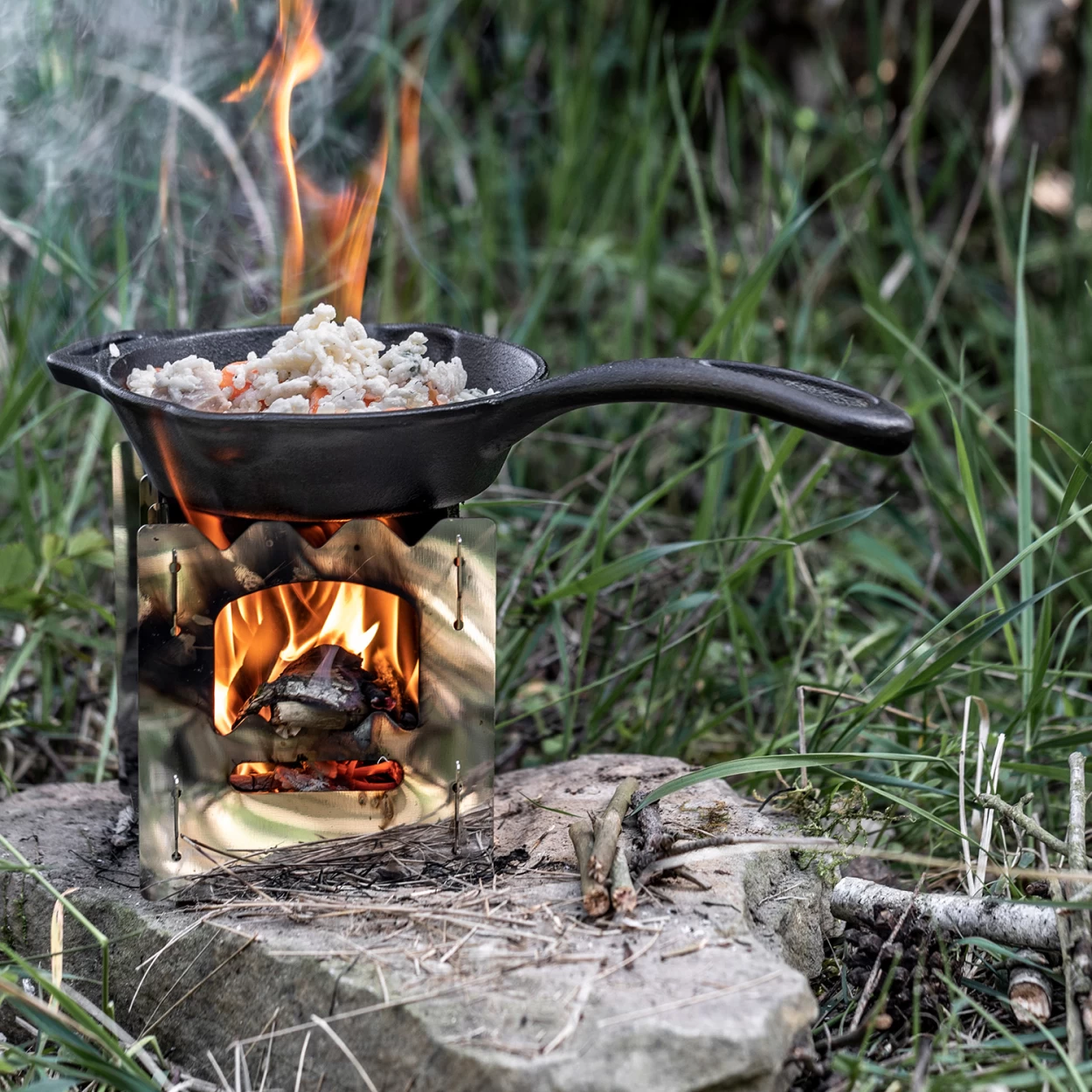 Kochstelle im Freien, auf einem Lagerfeuer oder einem passenden Grill
