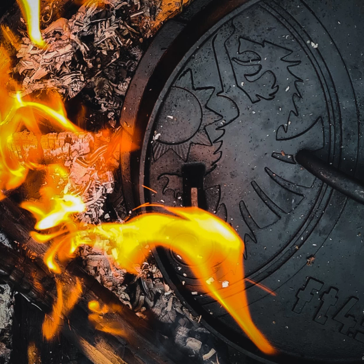 Zur Verwendung im Freien wird der Dutch Oven in das offenen Feuer oder