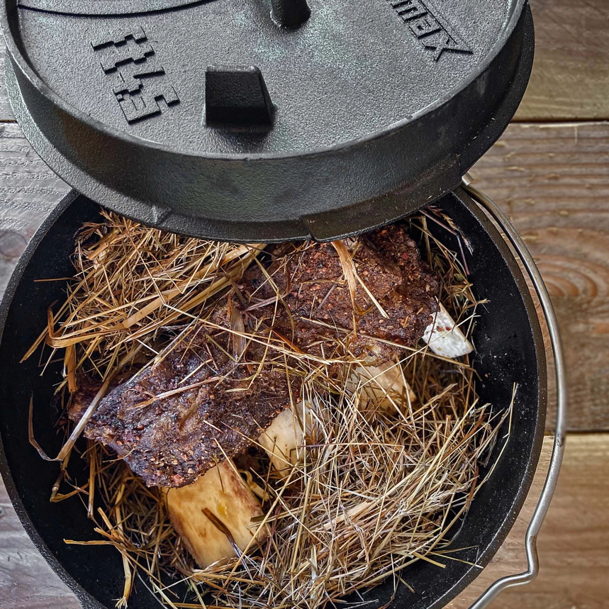 Freien oder auch konventionell im Backofen. Gusseiserne Töpfe gibt es