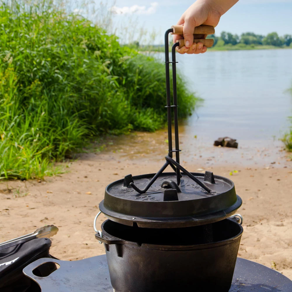 Er ist überall einsetzbar und passt zu jeder Größe von Petromax Feuertöpfen.