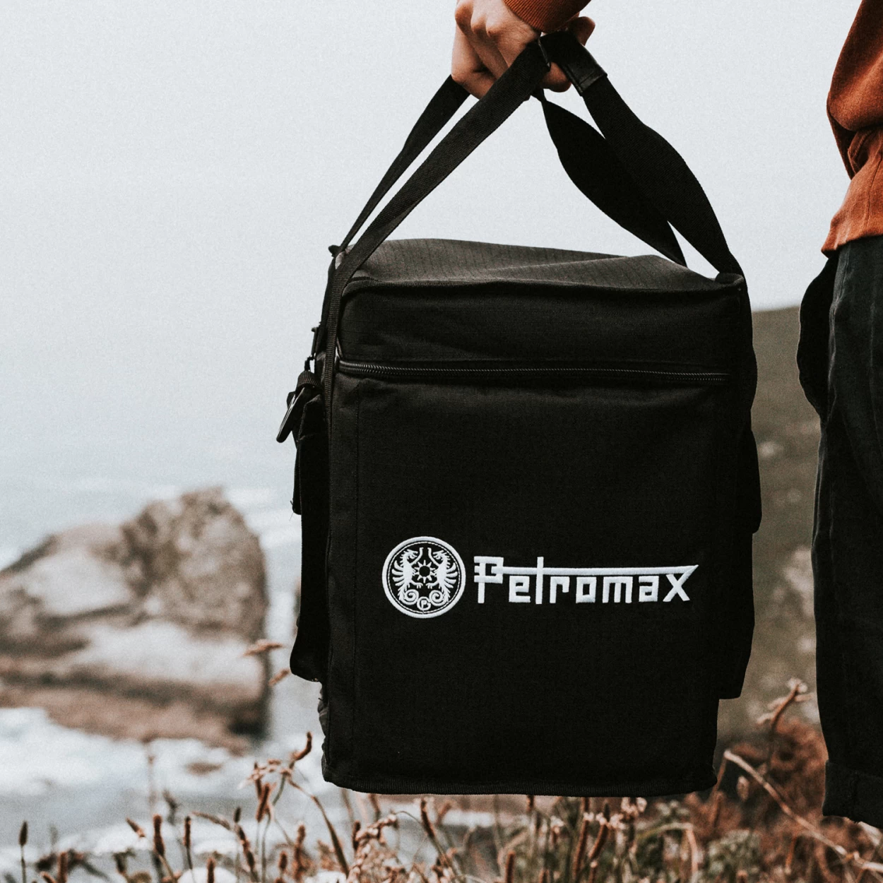 das robust gepolsterte Ripstop-Gewebe mit aufgesticktem Petromax-Logo.