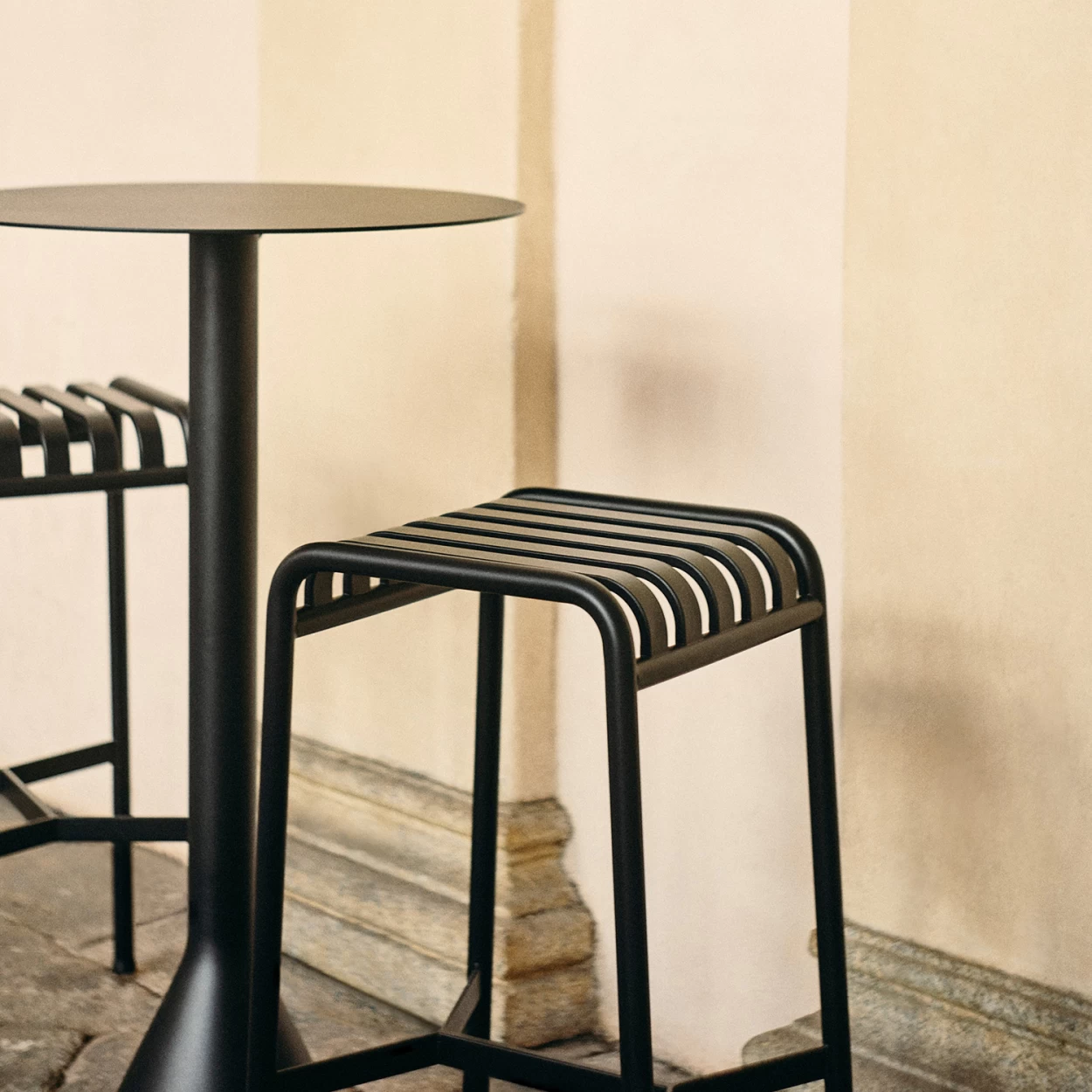 Der Tisch ist Teil der beliebten Palissade-Serie, bestehend aus Stühlen, Sesseln, Bänken, Tischen und Hockern.