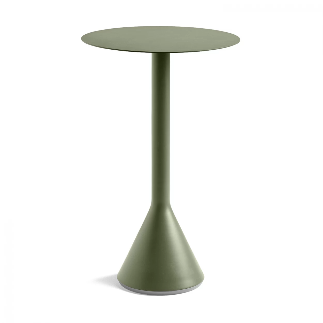 Eine ultradünne Tischplatte aus Stahl und eine solide Basis aus kegelförmigem Beton bilden die Basis für diesen Tisch von HAY.