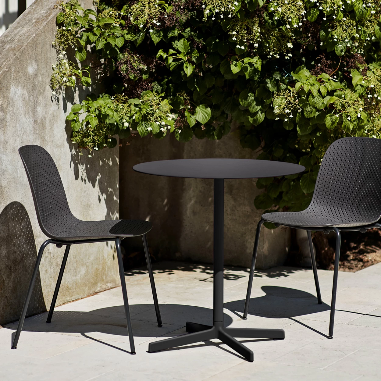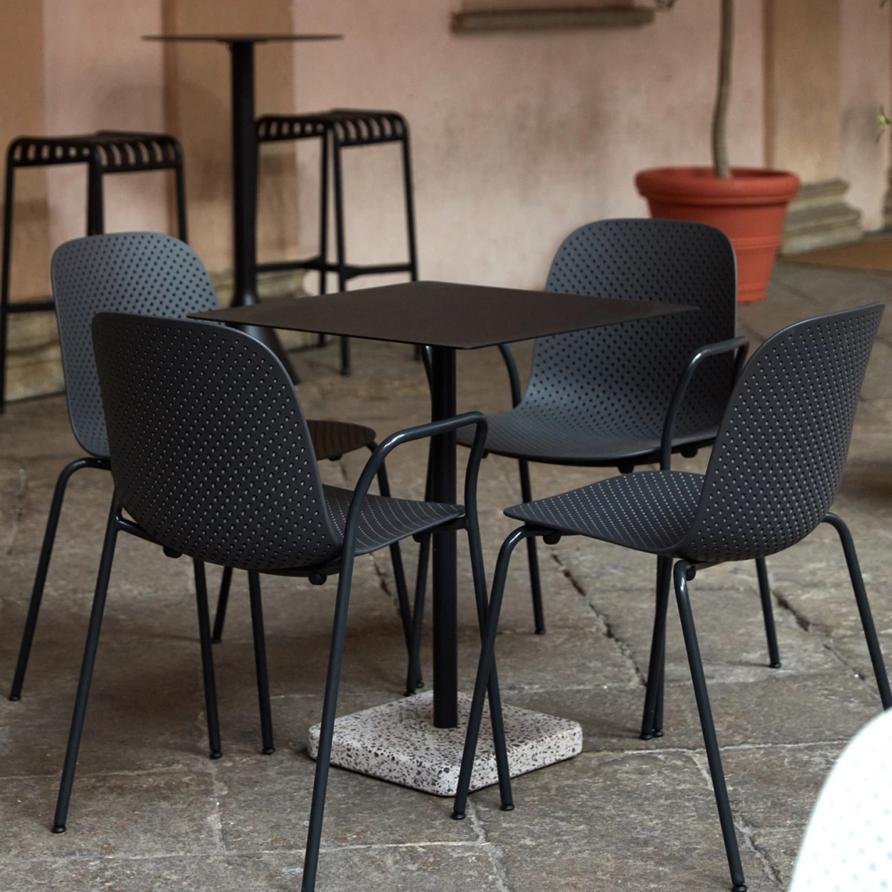 FĂĽr Indoor & Outdoor: stapelbarer Stuhl im Loch-Design