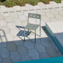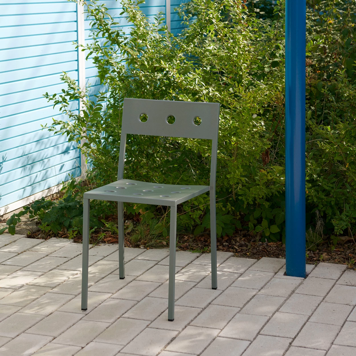 Der Balcony Chair ist ein eleganter und funktionaler Esszimmerstuhl für den Außenbereich. Ronan und Erwan Bouroullec haben ihn für HAY in einem quadratischen Design entworfen, das durch die abgerundete Rückenlehne aufgelockert wird. Die Löcher in Sitz und Rückenlehne verstärken die Konstruktion, lassen Regenwasser leichter ablaufen und verleihen dem Stuhl einen besonderen Ausdruck. Balcony besteht aus pulverbeschichtetem Stahl mit einer Grundierung für den Außenbereich, was ihm eine optimale Widerstandsfähigkeit und Haltbarkeit schenkt. Er ist in verschiedenen stilvollen Farbvarianten erhältlich. Da er außerdem stapelbar ist, eignet sich der Stuhl nicht nur für größere Außenbereiche und Gärten, sondern auch für kleine Balkone und Terrassen. Ein robuster Hingucker für Deinen gemütlichen Outdoor-Bereich.