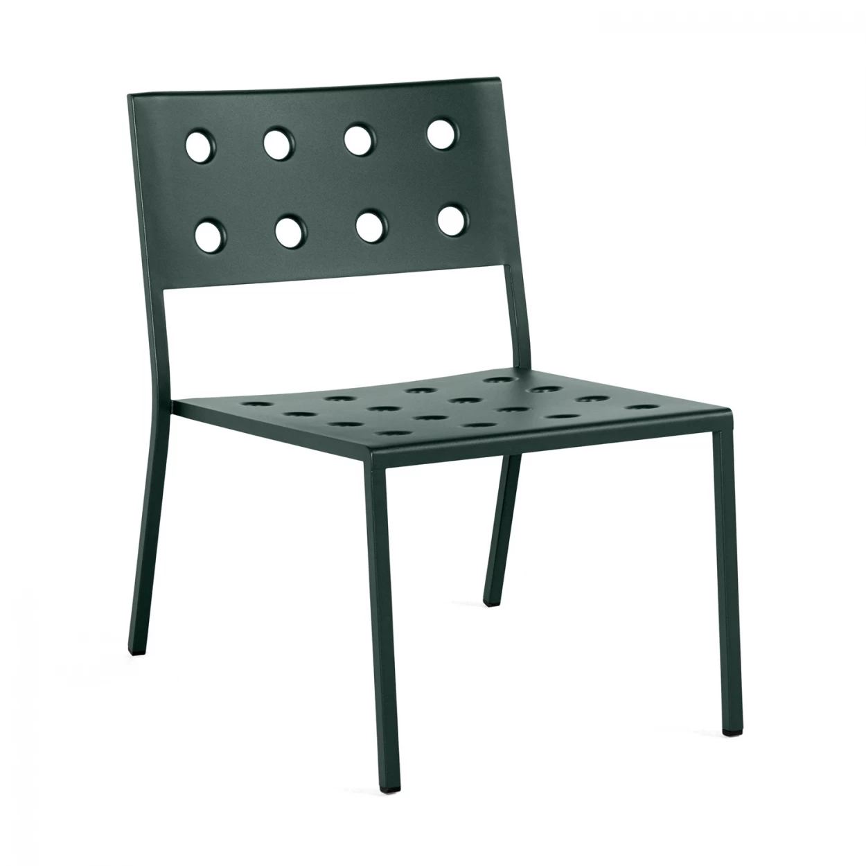 Der Balcony Lounge Chair ist ein niedriger und bequemer Sessel fĂĽr den AuĂźenbereich. Ronan und Erwan Bouroullec haben ihn fĂĽr HAY in einem breiten, quadratischen Design entworfen, das durch die abgerundete RĂĽckenlehne aufgelockert wird. Die Löcher in Sitz und RĂĽckenlehne verstärken die Konstruktion, lassen Regenwasser leichter ablaufen und verleihen dem komfortablen Loungesessel einen besonderen, freundlichen Ausdruck. Balcony besteht aus pulverbeschichtetem Stahl mit einer Grundierung fĂĽr den AuĂźenbereich, was ihm eine optimale Widerstandsfähigkeit und Haltbarkeit schenkt. Er ist in verschiedenen stilvollen Farbvarianten erhältlich. Da er auĂźerdem stapelbar ist, eignet sich der Stuhl nicht nur fĂĽr größere AuĂźenbereiche und Gärten, sondern auch fĂĽr kleine Balkone und Terrassen. Ein robuster Hingucker fĂĽr Deinen gemĂĽtlichen Outdoor-Bereich.Â