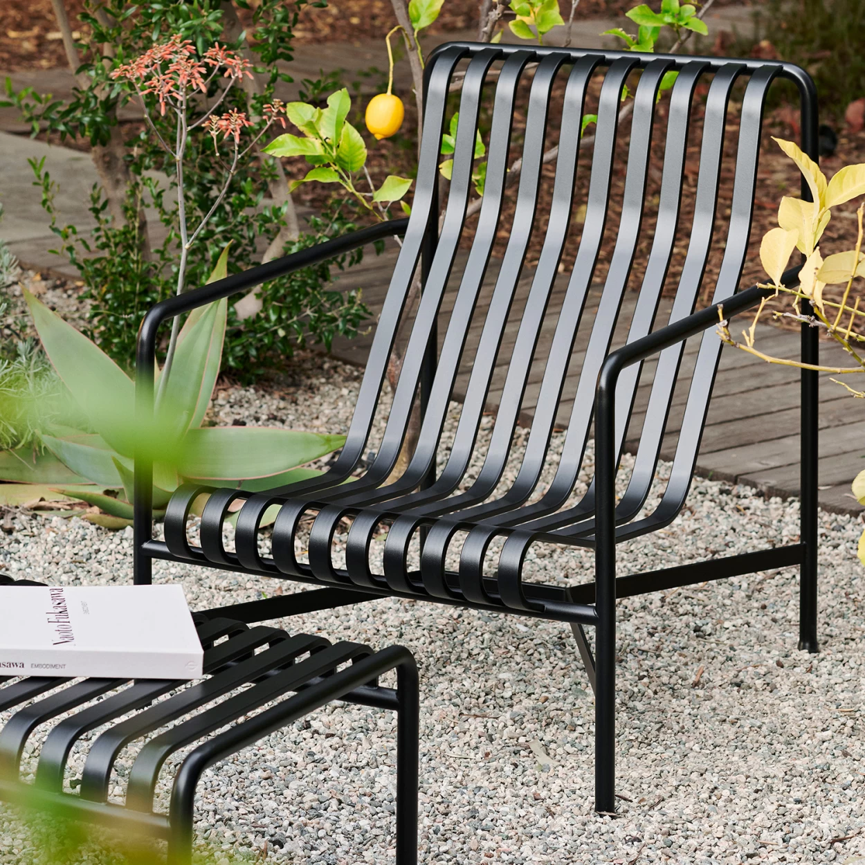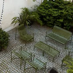 Palissade, von den französischen Designbrüdern Ronan und Erwan Bouroullec für HAY entworfen, ist eine moderne Kollektion von Gartenmöbeln aus wetterfestem, pulverbeschichtetem Stahl.