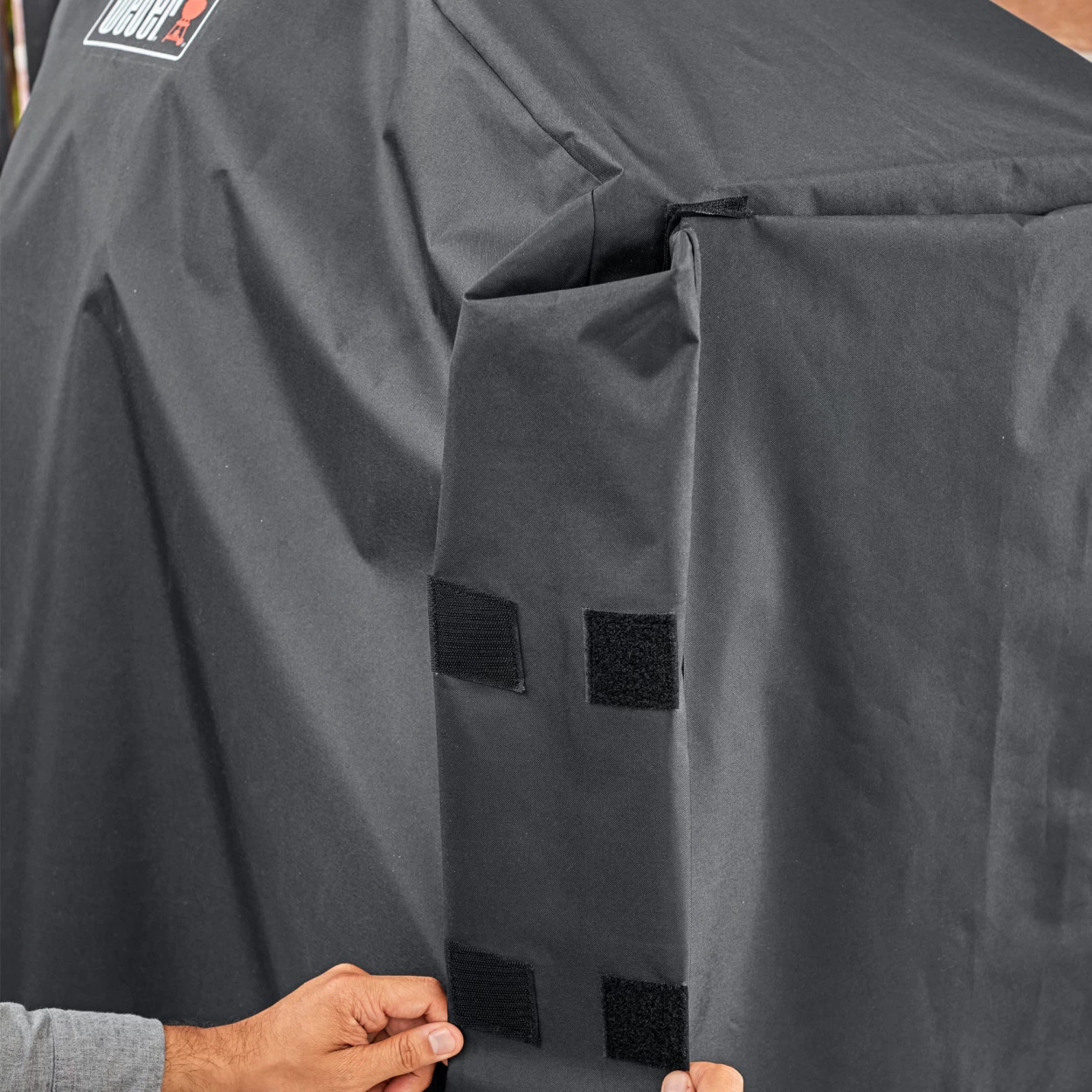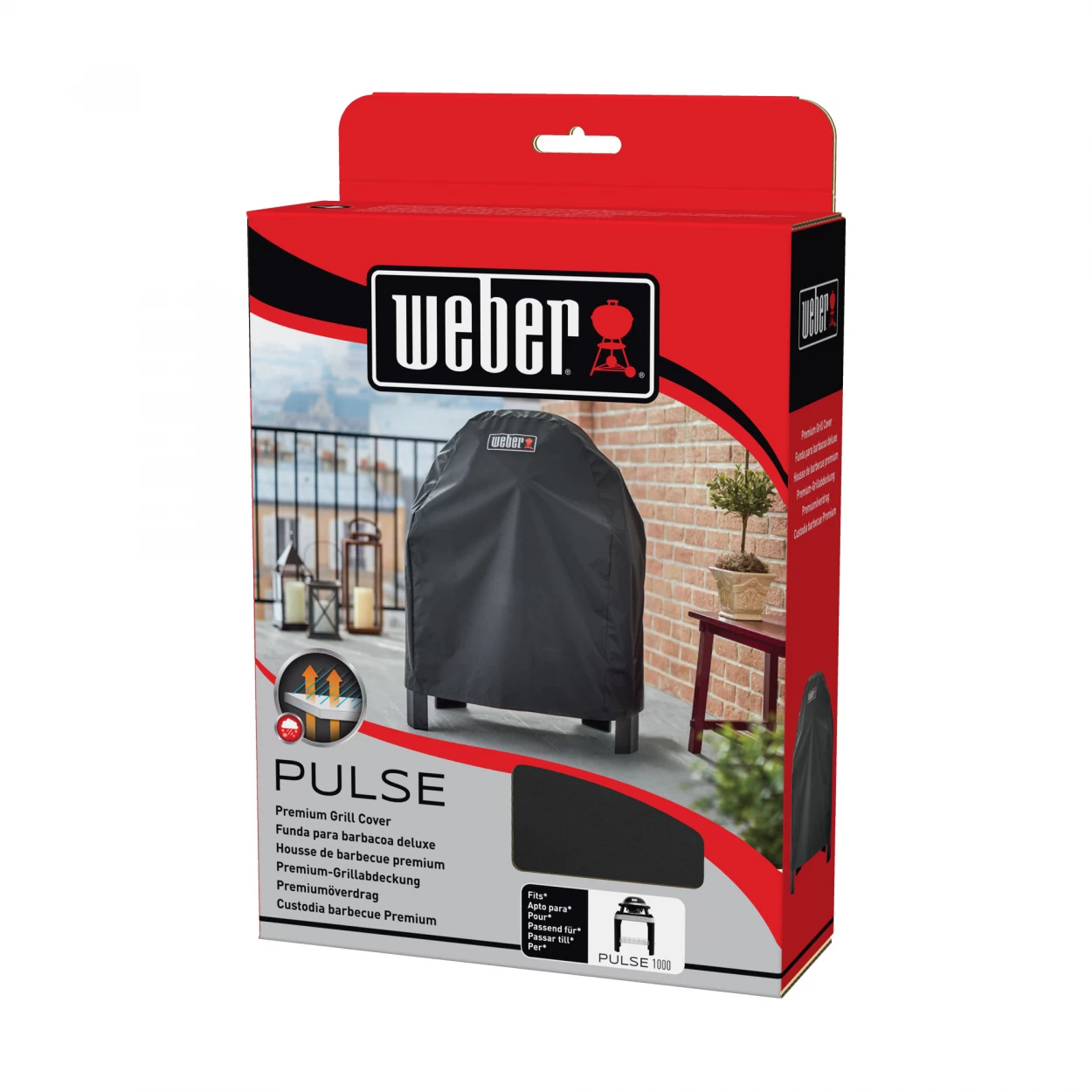 Die Premium Abdeckhaube von Weber ist aus langlebigem Material und bietet optimalen Schutz vor Schmutz, Wind, UV-Strahlung, Schnee und ist regenabweisend. Passend fĂŒr Weber Pulse 1000 mit Stand.
