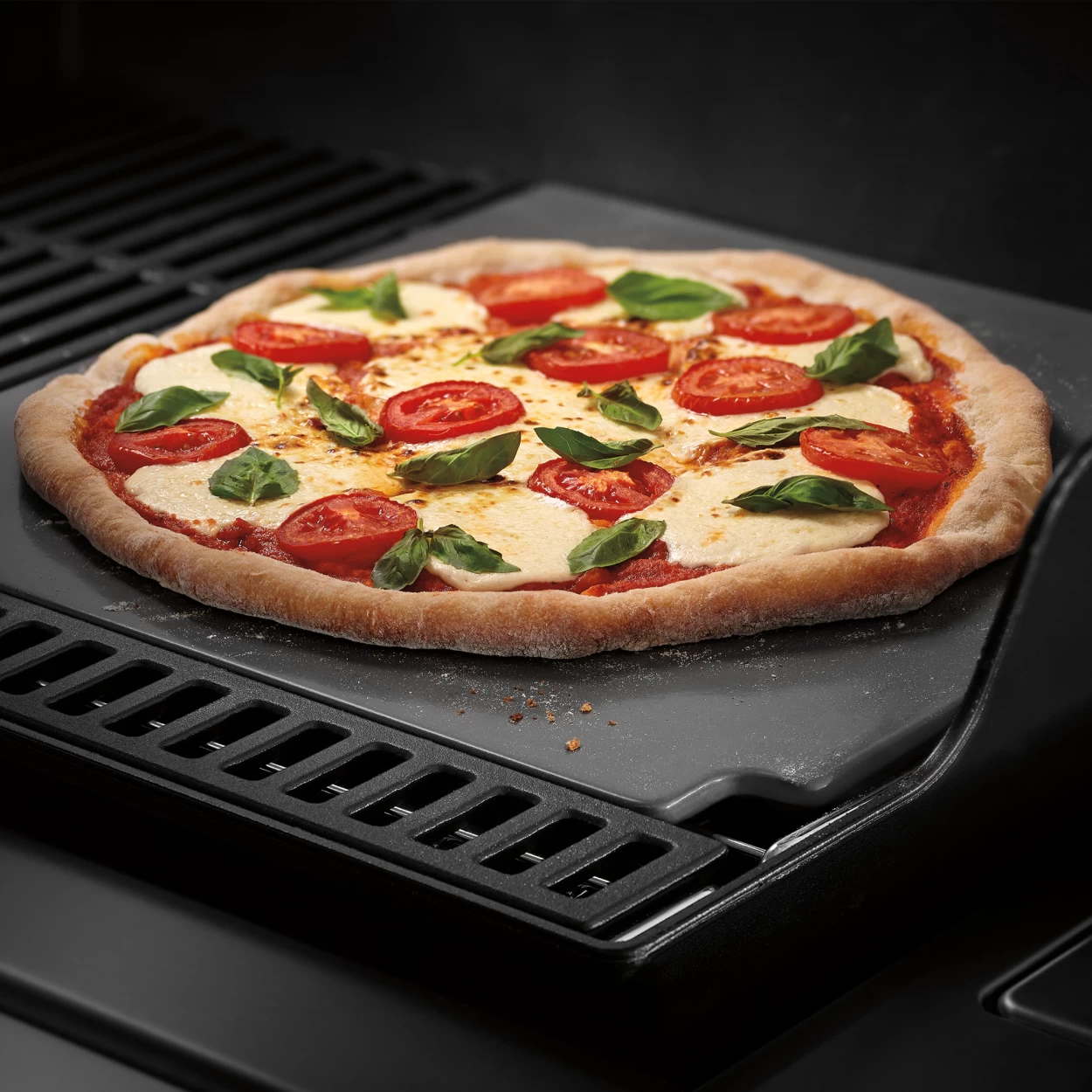 Beschichteter Grillstein fĂŒr mehr Platz (40 x 41 cm) und mehr Möglichkeiten. Zum Beispiel Brot, Flammkuchen und natĂŒrlich Pizza. Durch die glatte, cordierte OberlĂ€che ist der Grillstein leicht zu reinigen.