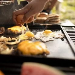 Hochwertige, extragroĂe Grillplatte (40 x 41 cm) aus porzellanemailliertem Gusseisen. Fettablauf schrĂ€g nach hinten. Flache OberflĂ€che mit SeitenwĂ€nden. Einfach zu reinigen.