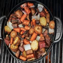 Dieser Einsatz aus porzellanemailliertem Gusseisen hat ganz schön was auf der Pfanne. Denn er ermöglicht Ihnen, Ihr Lieblingsrezept vom Herd einfach in den Grill zu verlegen. Er eignet sich ideal fuÌr Zutaten, die Ihnen sonst durch den Rost fallen wuÌrden, wie z. B. Scampi, Pilze oder klein geschnittenes GemuÌse. Auch Fischfilet gelingt in der Pfanne hervorragend.