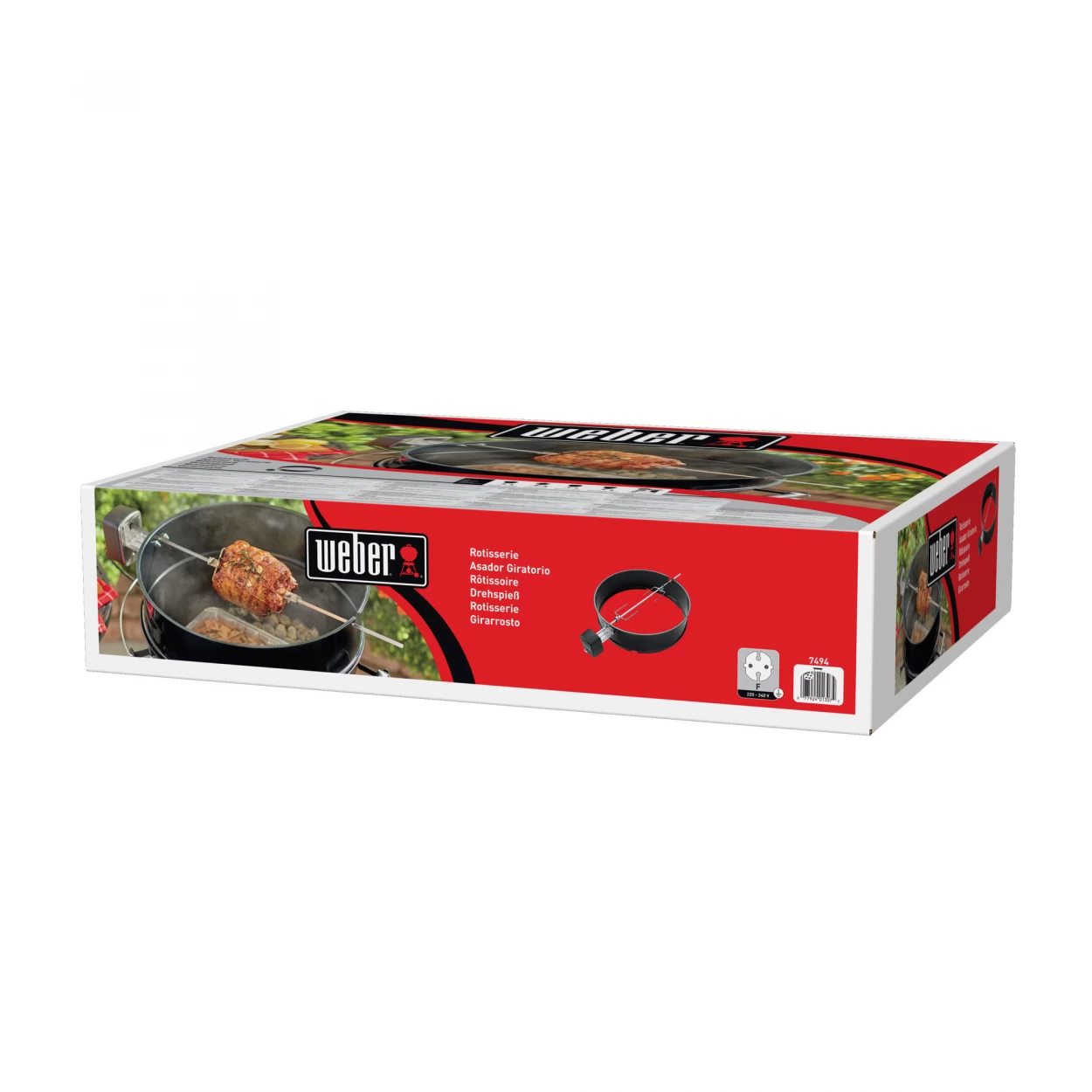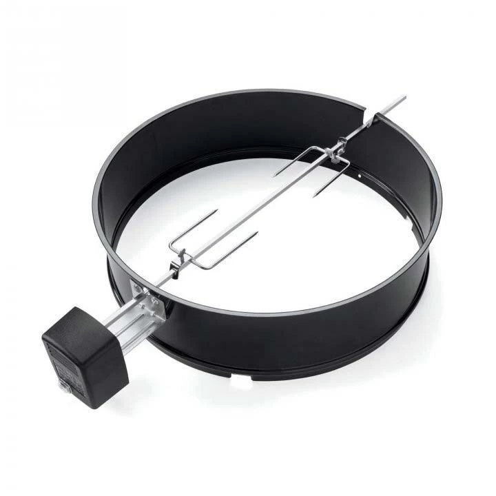 Der elektrische Drehspieß eignet sich optimal für große Stücke Grillgut und der Deckelring vergrößert das Volumen. Ideal zum Grillen von Hähnchen, Roll- oder Spießbraten, Ente usw.