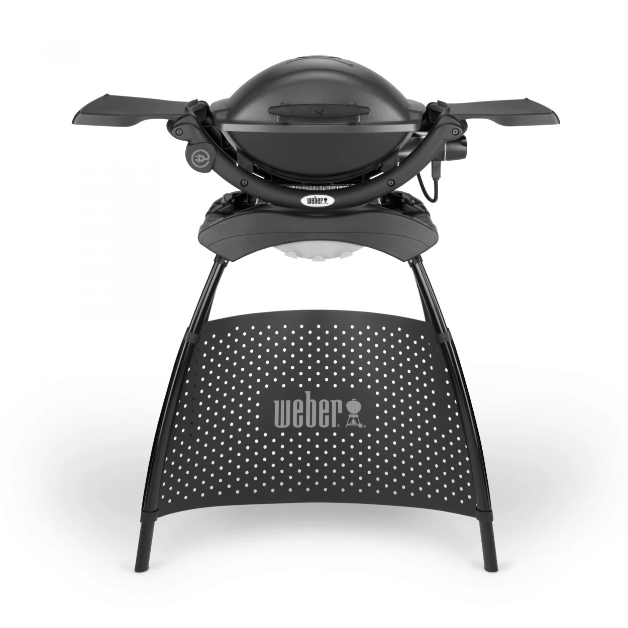 Die Elektrogrills von Weber mit der Geschmacksgarantie dank optimaler LeistungsstĂ€rke. Elektrogrills von Weber sind die optimale Lösung fĂŒr Balkon und Terrasse, jetzt in neuem Design. Die Stand-Version des Weber Elektrogrill Q 1400 kommt in praktischer Arbeitshöhe und drei Besteckhaken an der Front. ZusĂ€tzlich ist der Q 1400 Stand mit zwei Arbeitstischen fĂŒr zusĂ€tzliche ArbeitsflĂ€che ausgestattet.