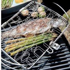 Der Gemüse- und Fischhalter ist für besonders empfindliches Grillgut geeignet. Aus rostfreiem Edelstahl. Auch als kleine Version für 47 cm Holzkohlegrills und Q 100-/1000 Serie erhältlich.