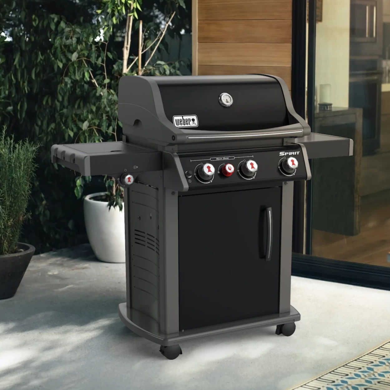 Der Spirit Original E-330 Gasgrill verfügt über einen Grillbereich mit einer Größe von 61 x 45 cm für Grillevents bis zu 8 Personen, über einen geschlossenen Unterschrank für die Unterbringung deiner Gasflasche sowie über zwei feststehende Edelstahl-Seitentische mit zwei Besteckhaken für dein Grillwerkzeug.