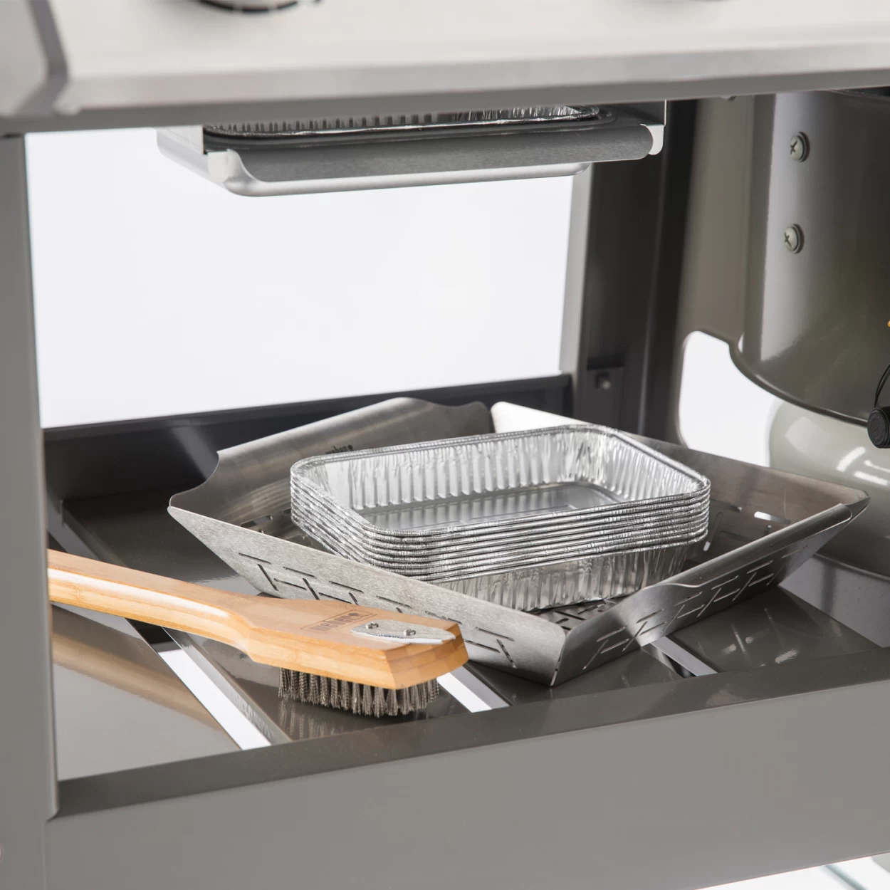 - Fettauffangsystem – verhindert Stichflammen und erleichtert die Reinigung