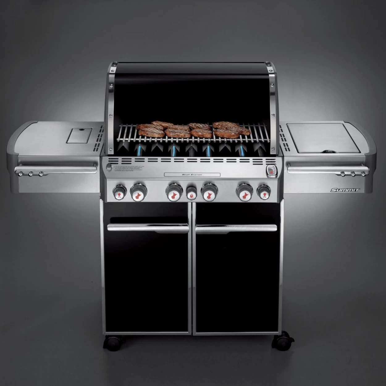 Der Weber Gasgrill Summit E 470 ist mit der neuen Sear Station für besonders hohe Temperaturen ausgestattet. Durch den zusätzlichen Brenner erhält ihr Fleisch schon nach kurzer Zeit das perfekte Grillmuster und den typischen Grillgeschmack. Jetzt mit dem beliebten Gourmet BBQ System Grillrost für viele innovative Ergänzungsmöglichkeiten im Zubehörbereich.