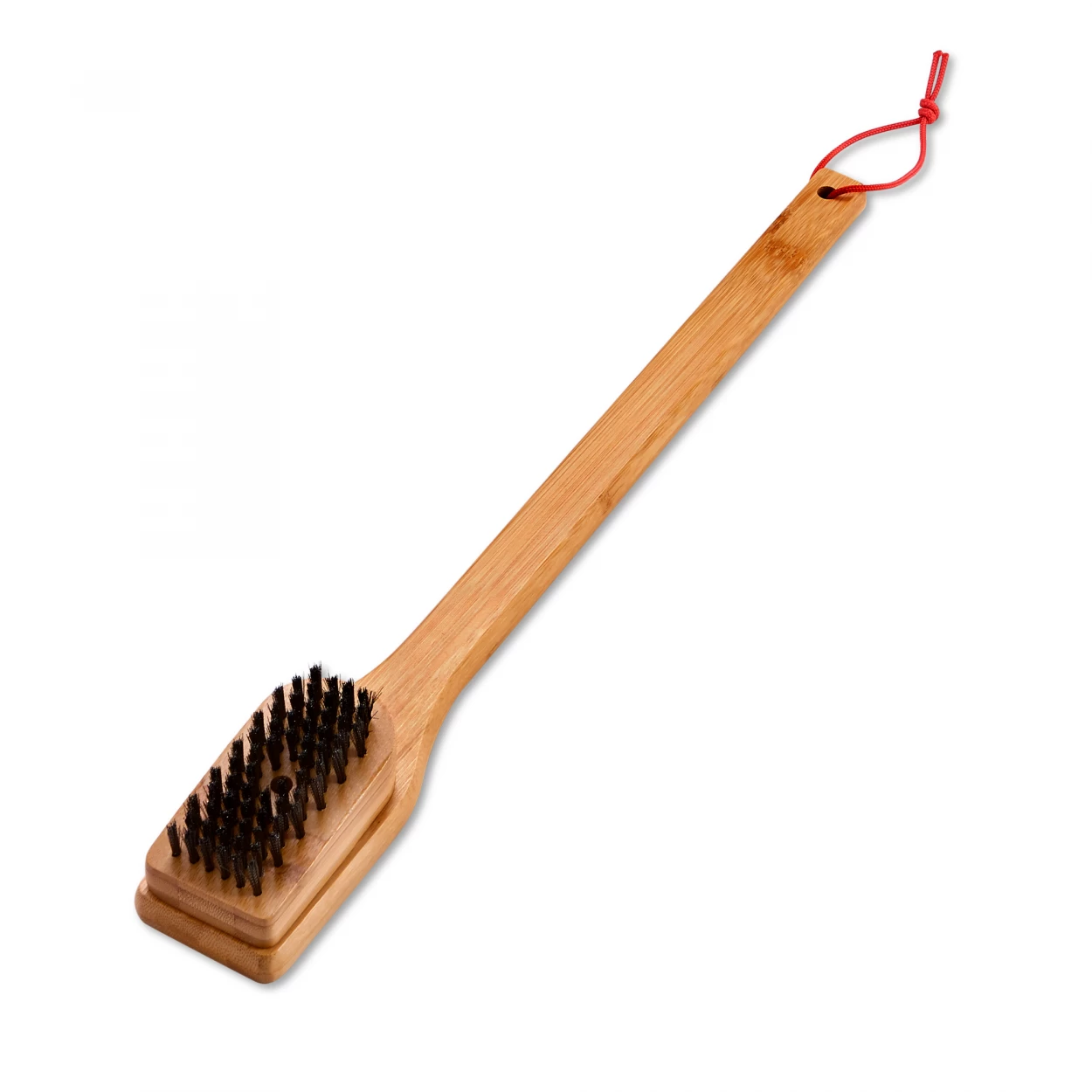 Der Griff dieser Grillbürste besteht aus hochwertigem Bambusholz, das nicht nur umweltfreundlich, sondern auch äußerst stabil und langlebig ist. Bambusholz ist bekannt für seine Nachhaltigkeit und hohe Widerstandsfähigkeit, was es zur idealen Wahl für Grillzubehör macht. Der ergonomische Griff liegt gut in der Hand und ermöglicht eine bequeme und effektive Reinigung des Grillrostes.