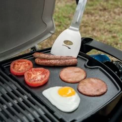 Mit gusseisernen Grillplatten ist die Zubereitung eines leckeren Frühstücks, mit Rühr- oder Spiegelei, Speck oder Sandwiches bzw. Fajitas ein Kinderspiel. Die Grillplatte ist aus porzellanemailliertem Gusseisen. Mit der Platte wird eine Hälfte des Grillrostes ersetzt und sie ist mit 2 integrierten Fettablauföffnungen ausgestattet.