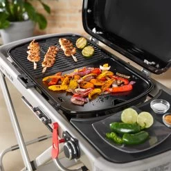 - Porzellanemailliertes Gusseisen speichert die Wärme und erzeugt Grillaromen ohne zusätzliches Würzen