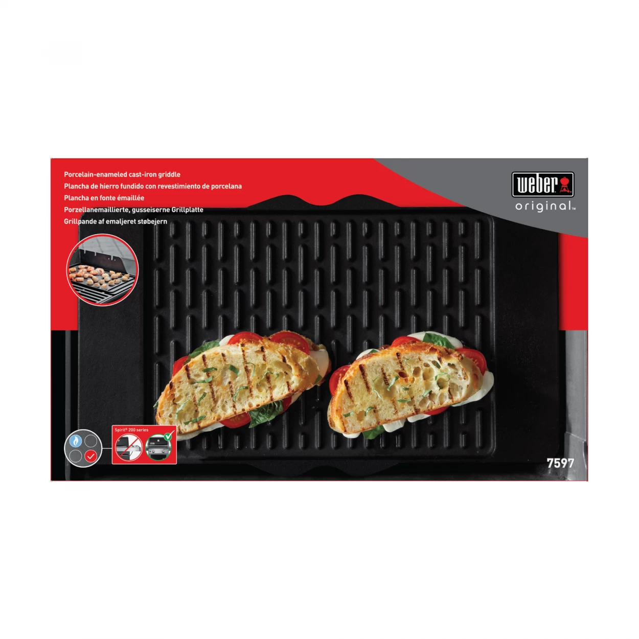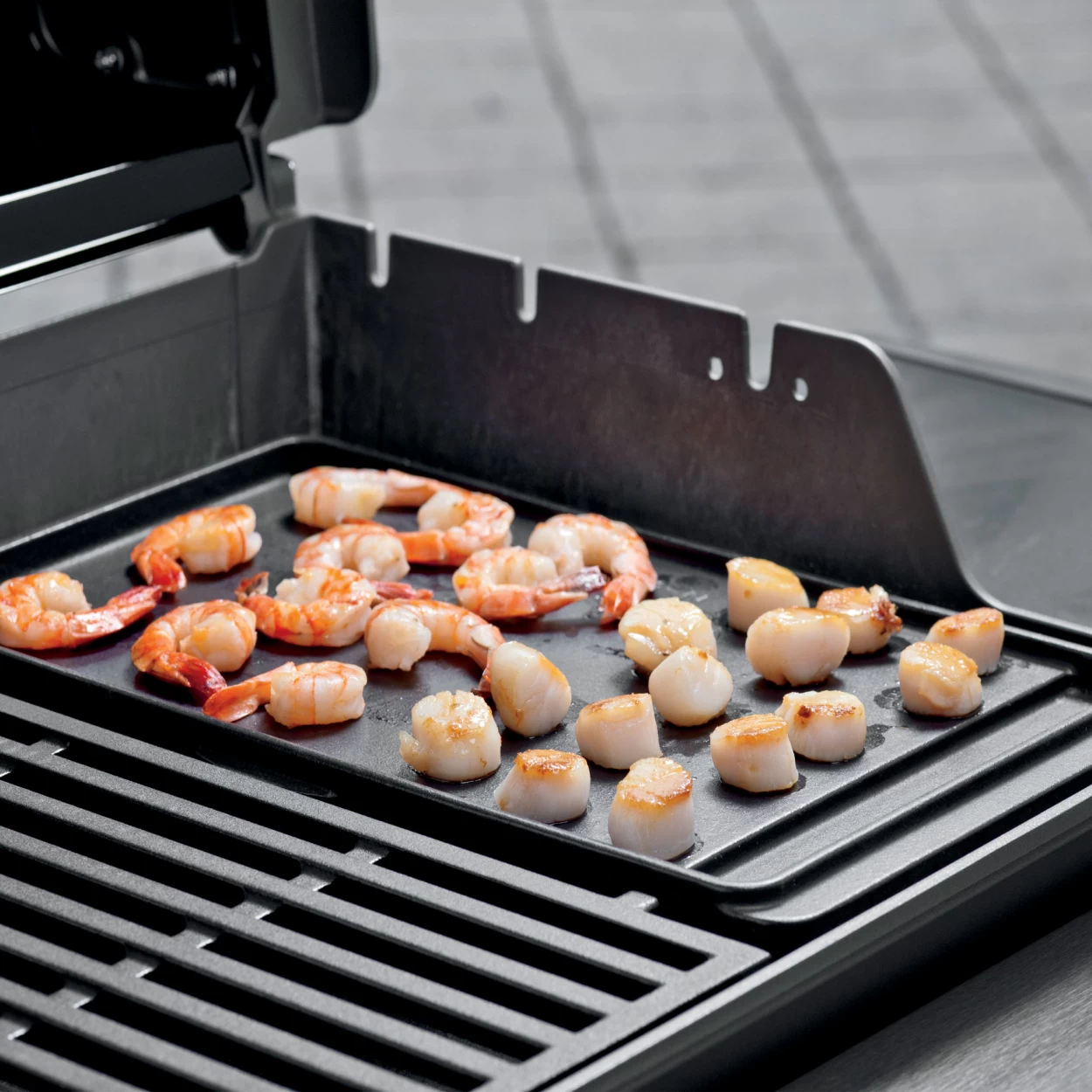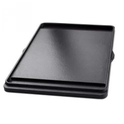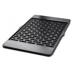Die Wendeplatte ist beidseitig nutzbar. Sie ist mit einer flachen und einer geriffelten Seite ausgestattet und wird anstelle eines Grillrostes in den Grill eingesetzt.