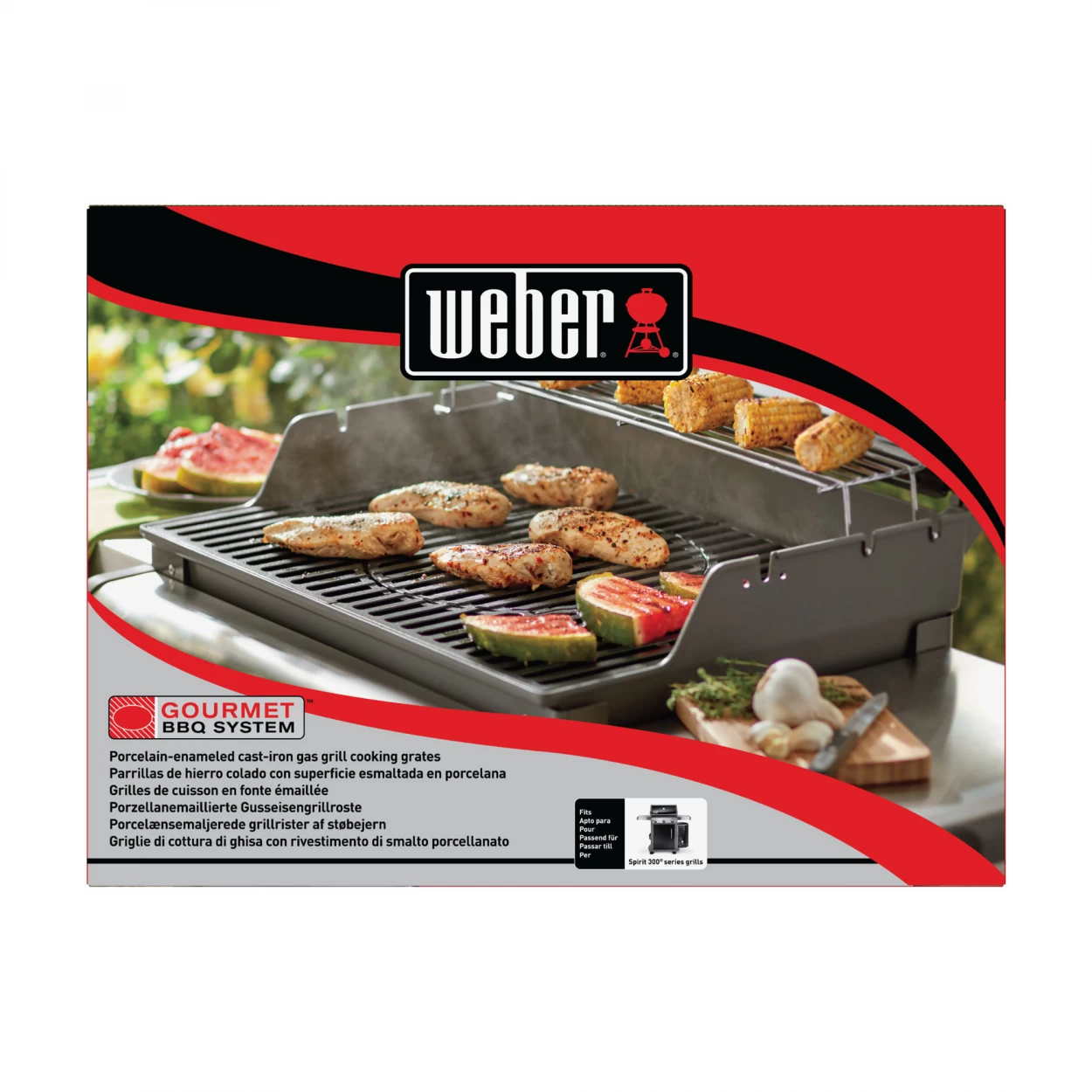 Grillrost aus Gusseisen, passend fĂŒr alle Weber Spirit 300 Modelle ab 2013, auch fĂŒr Spirit II 300 Modelle geeignet. (mit Bedienfeld an der Vorderseite)