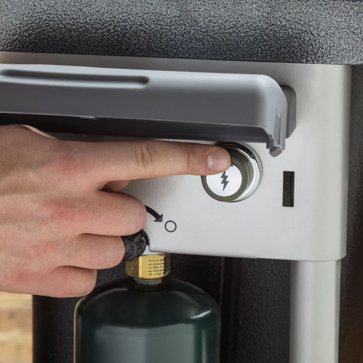 - Touch-N-Go Gaszündsystem: zum Anzünden der Briketts bzw. Holzkohle durch Knopfdruck (Kartusche nicht im Lieferumfang)