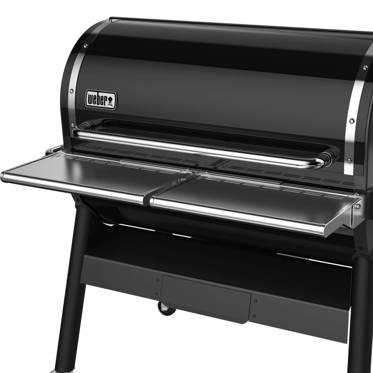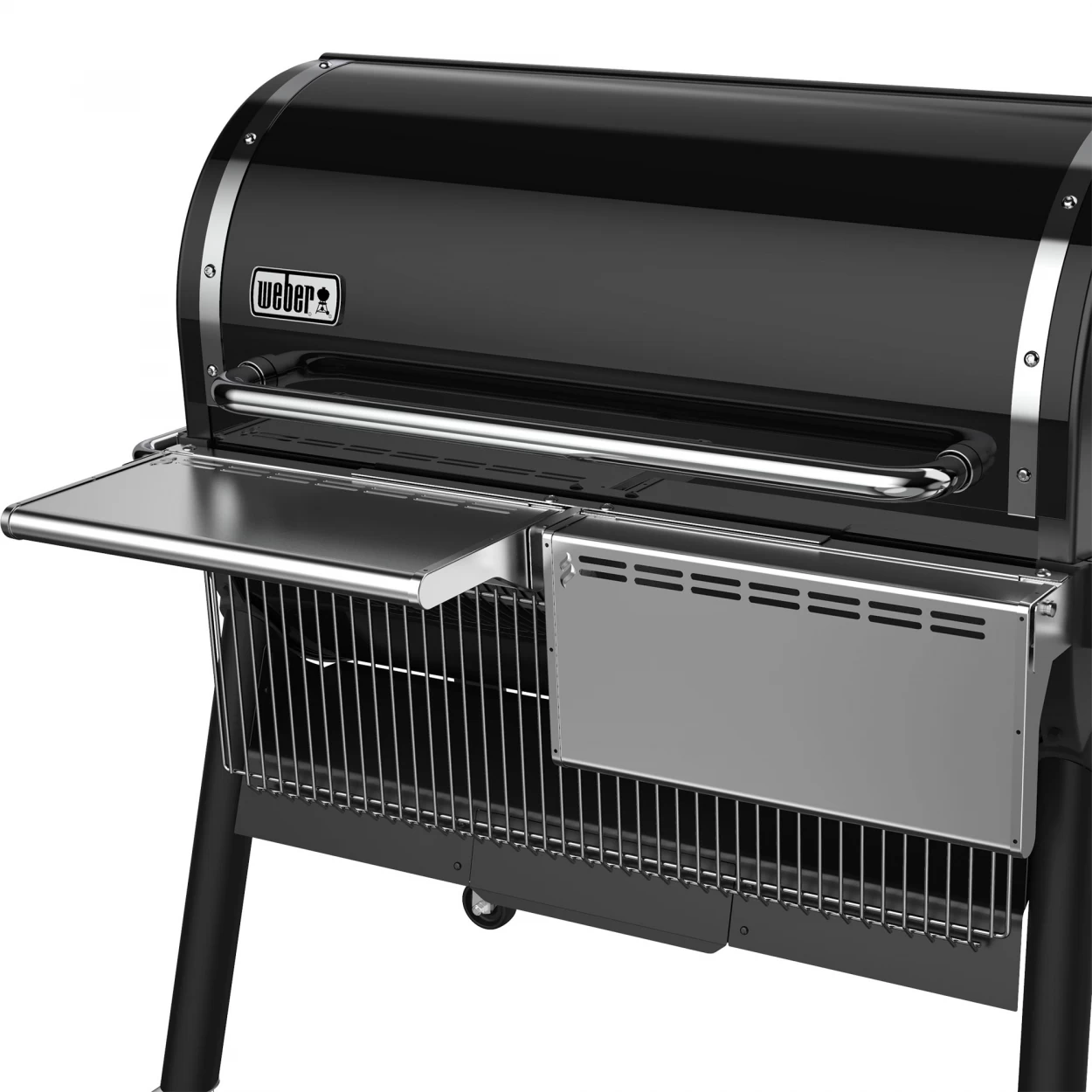 • Die Ablage ist im hoch- und heruntergeklappten Zustand für die SmokeFire Premium-Abdeckhaube (separat erhältlich) geeignet
