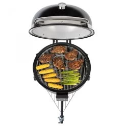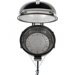 Der sehr belastbare Stahlrahmen ist speziell dafĂŒr entwickelt worden, dass er den schweren und massiven Kessel tragen kann und dabei die nötige StabilitĂ€t hat. Der Rahmen steht auf drei sehr stabilen Beinen, die im unteren Bereich ebenfalls miteinander verbunden sind. Die RĂ€der an den Beinen sorgen dafĂŒr, dass der Grill bequem bewegt werden kann, auch gerne mal ĂŒber Schotter oder grobes Pflaster. Der Boden des Grills besteht aus Stahlstreben und dient als Ablage.